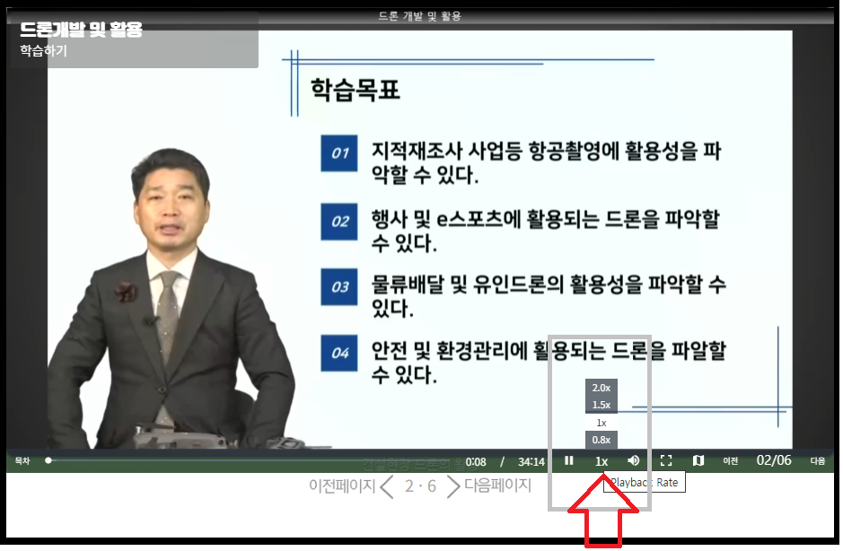 - 교육 영상 수강시 2배속으로 수강 가능한지