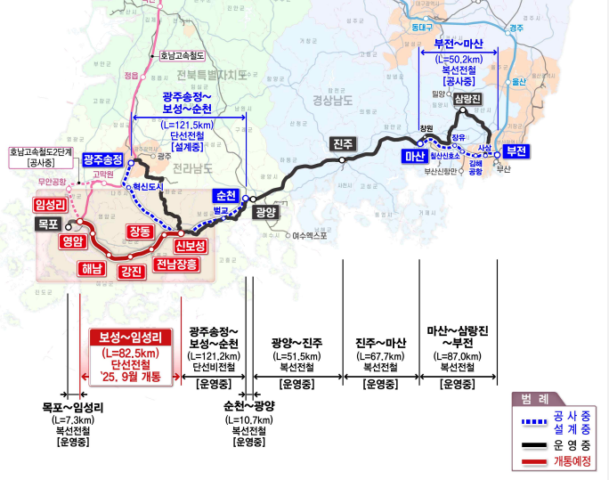 목포에서 부산까지 남해안권 간선철도망 완성, 27일부터 보성~목포철도 개통!