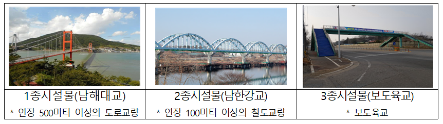 ㅇ 제1종 시설물: 특별히 관리할 필요가 있거나 구조상 안전 및 유지관리에 고도의 기술이 필요한 대규모 시설물(법 제7조제1호)
