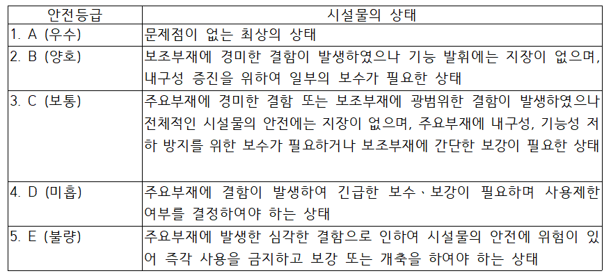 □ 시설물 안전등급 체계(시행령 별표 8)