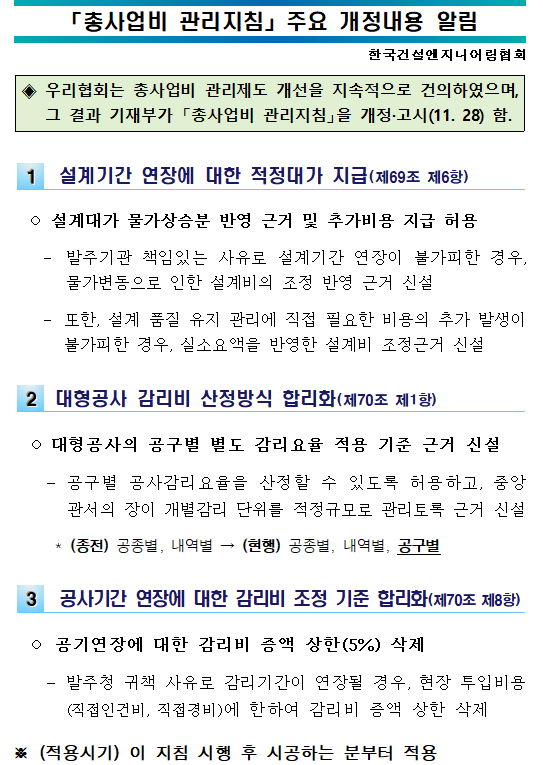 붙임 : 1.「총사업비 관리지침」주요 개정내용 1부.