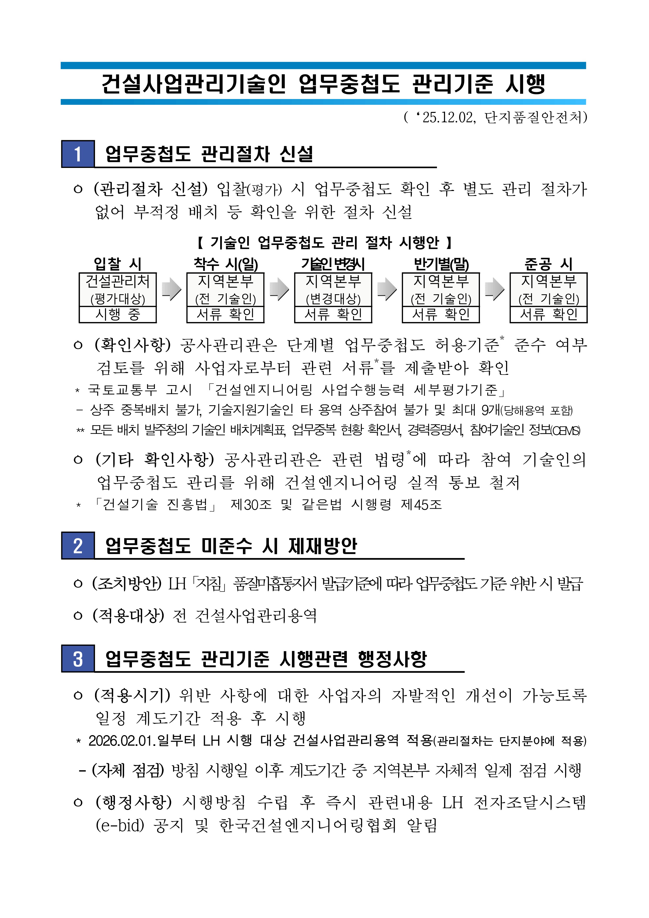 | LH, 건설사업관리기술인 업무중첩도 관리기준 시행 안내 | 관리자 / 2025.12.16 | |