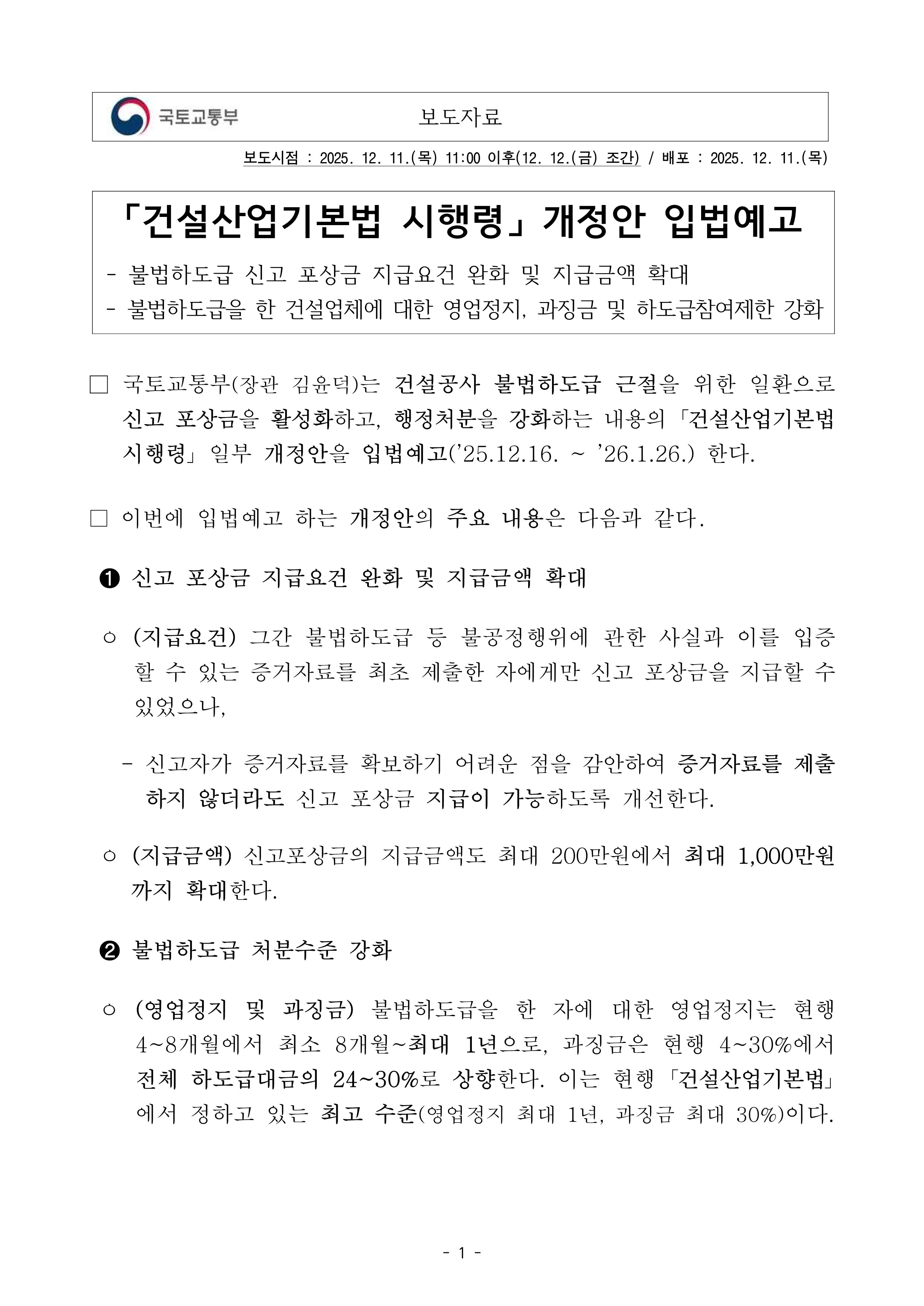 | 「건설산업기본법 시행령」 개정안 입법예고 | 관리자 / 2025.12.17 | |