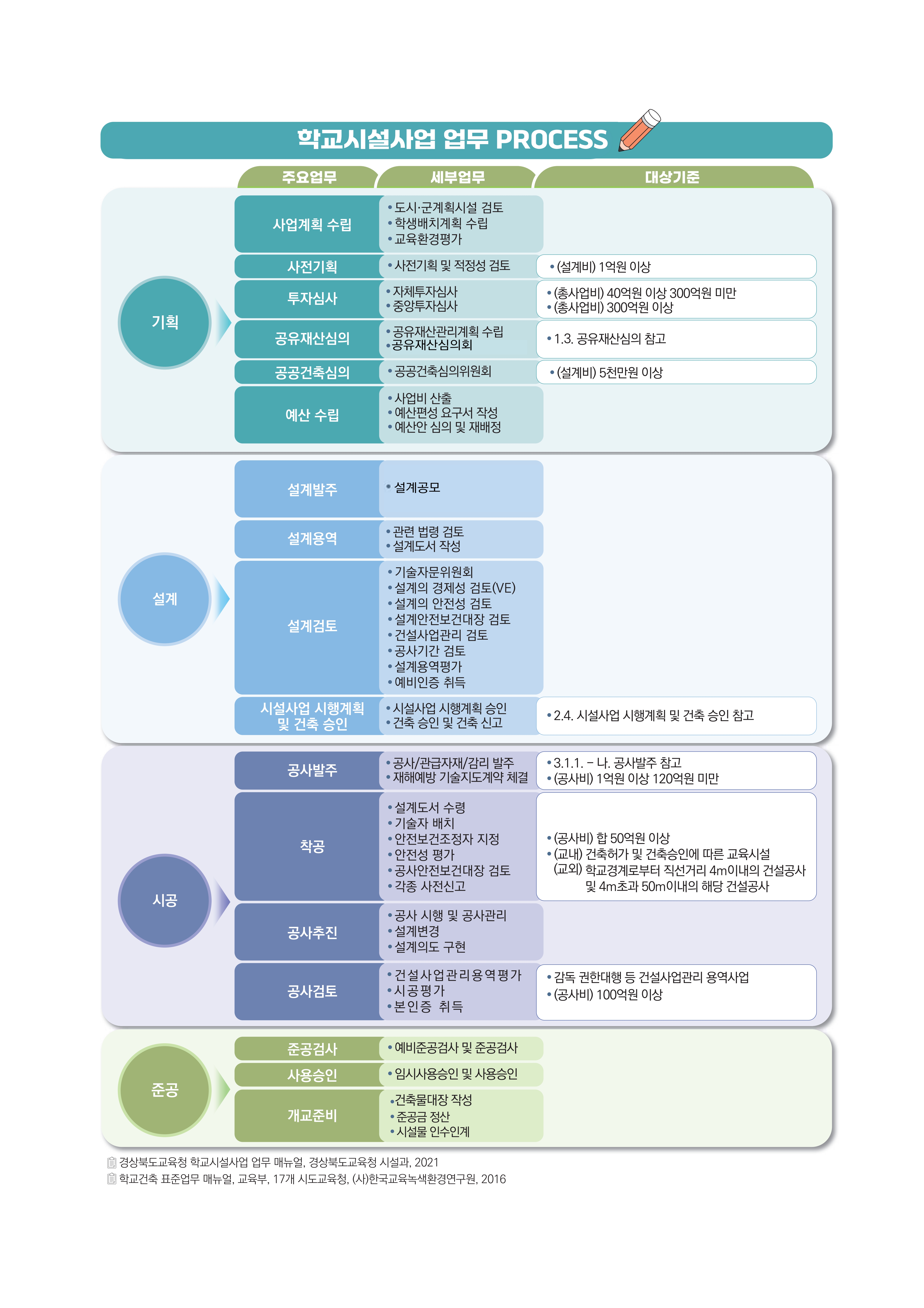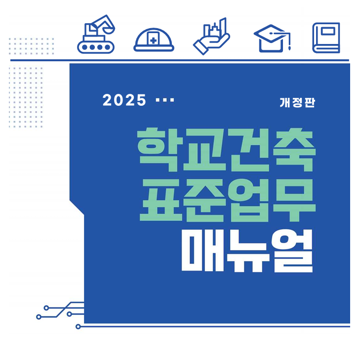 2016년 발행된 '학교건축 표준업무매뉴얼(2016, 교육부)' 을전면 개정한 「2025 학교건축 표준업무매뉴얼」을 공유드리오니,해당 자료가 필요하신 분들은 적극 활용하시기 바랍니다.