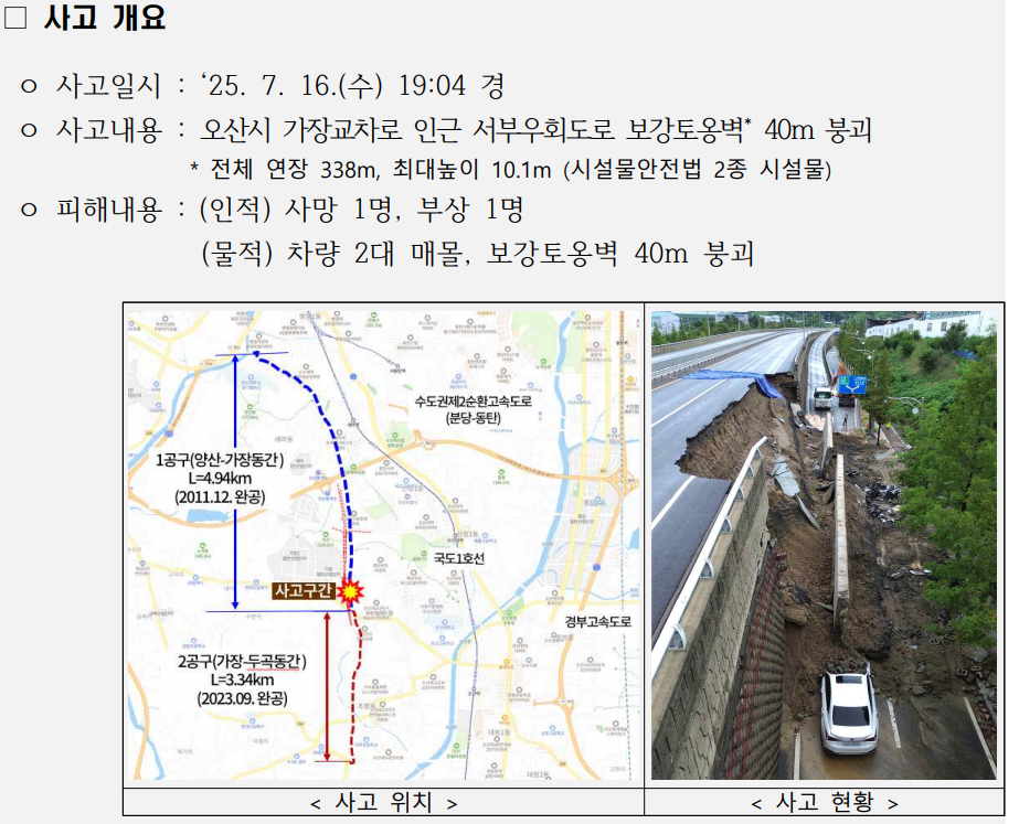 오산 보강토옹벽 붕괴사고 조사 결과