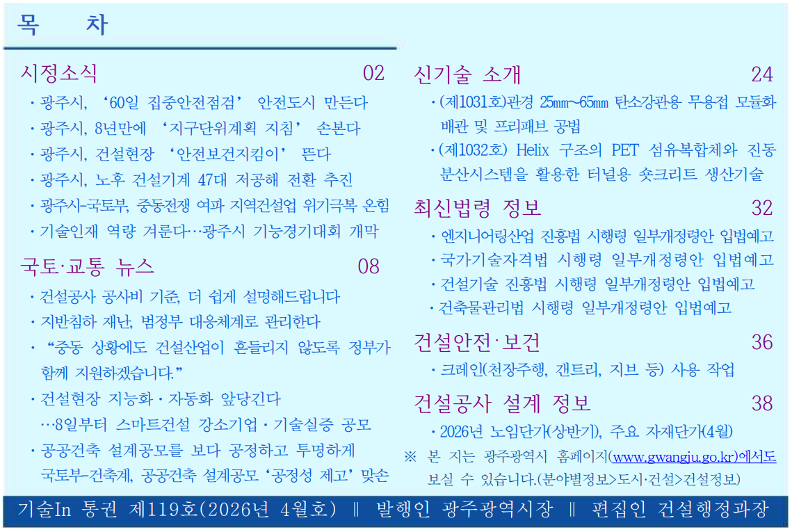 | (2026년 4월호)건설기술정보지 월간 기술인 | 관리자 / 2026.04.27 | |