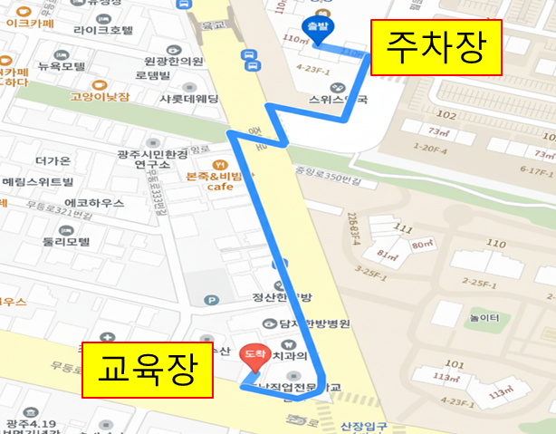 광주광역시 동구 무등로 337 (한국능력개발원 건설기술인교육원) 1층 주차장 - 15대 내외 (이중주차)
